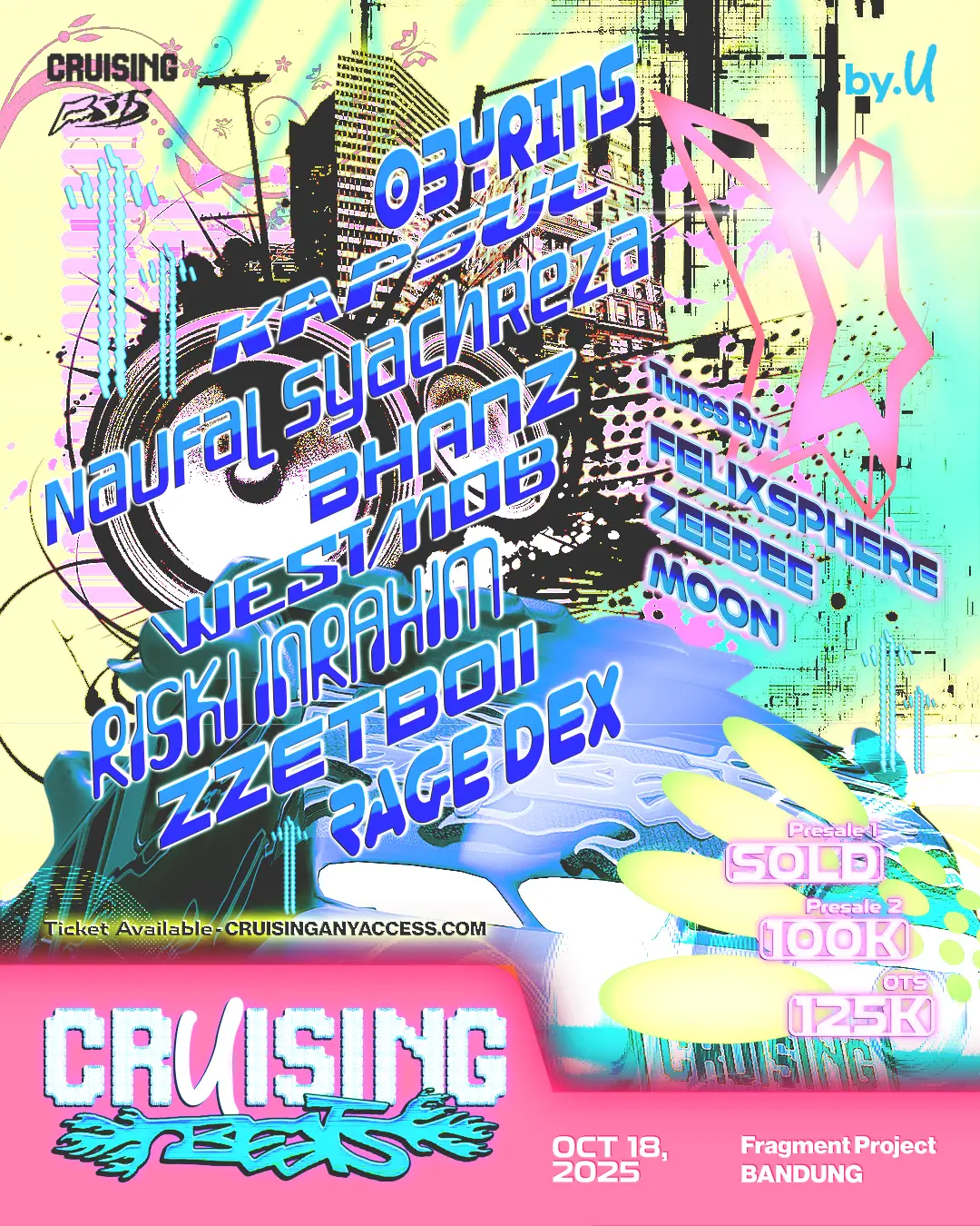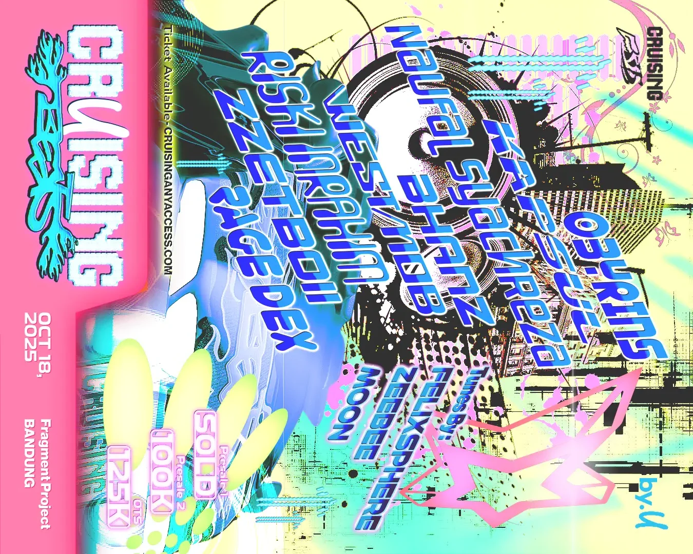 Cruising is a creative activation based in Bandung that operates across media and live events. We curate immersive experiences that blend music, art, visual storytelling, and community energy. Guided by the tagline “Any Access”, Cruising creates open and experimental spaces that embrace absurdity, emotion, and unorthodox collaboration. We are more than just an event organizer. Cruising is a portal into deeper cultural experiences, crafting formats that challenge conventional gigs through intimate concerts, conceptual performance art, collaborative installations, and subconscious-driven visuals. Cruising exists at the intersection of underground culture and youth creative expression. Always evolving, always raw, always alive.